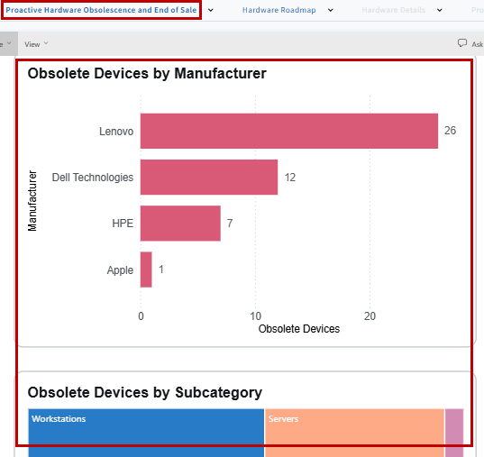 Do not use the “ Manufacturer ” or “ Subcategory ” column as the drill-through field. If these columns are being used in any other visual on any other report page, selecting them will incorrectly trigger the drill-through to the “ Obsolescence Device Details ” page. To avoid this issue, always use the measure as the drill-through field instead of column fields.