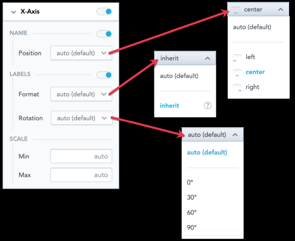To hide or display axes, toggle the switch for the X-Axis and Y-Axis.