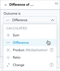 - In the Outcome is dropdown menu, select the function that you want to use to calculate the new measure.