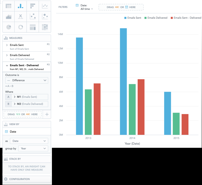 - Drag Emails Sent and Emails Delivered to the Measures section.
